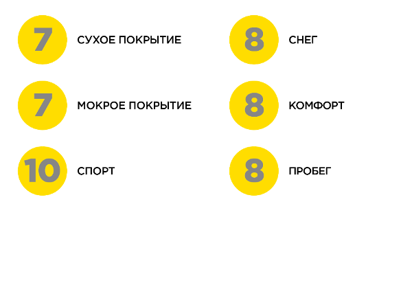 • Выдающееся сцепление на мокрой дороге и высокий уровень сопротивления аквапланированию
